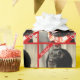 Plantilla personalizada del papel de embalaje de la foto del perro para los regalos del navidad. Marco rojo del navidad alegre con un diseño lindo del cuello de perro. Usted puede modificar el texto para requisitos particulares.