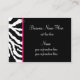 Tarjeta de visita rechoncha del estampado de zebra blanco y negro intrépido, llamativo con el ideal rosado del punto culminante para mostrar su negocio único. Plantilla adaptable.