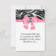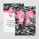 Lazo rosa elegante con centro de diamante plantilla de invitación para fiesta de cebra rosa RSVP. Este RSVP chic rosa cebra funciona muy bien para una invitación de cumpleaños de cebra rosa, invitación de boda de cebra rosa, invitación de baby shower de cebra rosa, invitación de bat mitzvah de cebra rosa y cualquier otra ocasión especial. Agregue sus detalles en la parte delantera y trasera simplemente eligiendo el botón naranja "¡Personalízalo!" para comenzar a agregar los detalles de su evento, estilo de fuente, tamaño y color de fuente, y redacción. Tenga en cuenta que todos los diseños de invitaciones que encontrará en Zazzle son gráficos impresos en papel stock plano sin joyas reales, lazos, partes o piezas en relieve, estampadas o agregadas.