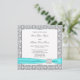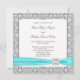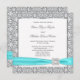 Elegante azul verde azulado con invitaciones de boda de encaje plateado. Añada sus detalles al frente y al reverso agregando los detalles del evento, el estilo de fuente, el tamaño y el color del tipo de letra y la redacción.