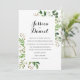 Plantillas de invitaciones a bodas de verde Una variedad de zonas verdes enmarcan la esquina superior derecha e inferior izquierda de esta plantilla de invitación a bodas de vegetación. Personalice esta invitación de boda cambiando el texto de los cuadros de texto de la plantilla proporcionados. Excelente para boda Boho, boda al aire libre o boda rústico.