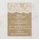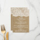 La colección Kraft & Lace presenta un diseño impresionante con un bonito fondo rústico de papel Kraft con un romántico efecto de encaje blanco vintage. Estas tarjetas de menú pueden ser personalizadas para su ocasión especial y harían la plantilla perfecta para cualquier boda rústico, ducha de novia, fiesta de compromiso, fiesta de cumpleaños y mucho, mucho más. *Tenga en cuenta que Zazzle sólo vende tarjetas de menú impresas para que estas tarjetas de menú no tengan ningún material de encaje real.