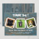Tarjetas de agradecimiento del refugio de animales con espacio para tres fotos. Agradezca a la gente por donaciones o por asistir / ser voluntario en un evento de recaudación de fondos. Diseño de madera azul rústico con tres marcos de álbum de fotos antiguos. Agregue tres fotos de algunos de los residentes del refugio. El texto es blanco con un "gracias" grande en la parte superior. Y debajo de las fotos, "De los residentes de (nombre del refugio)". También incluya texto más pequeño con más información según sea necesario. La parte posterior también tiene una imagen de madera rústica con una herradura. Este diseño también se puede comprar como descarga instantánea.