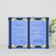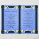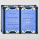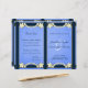 Floral azul rústico - © Sunny Mars Designs. Elegante y elegante personalizado de personalizable, elegante y elegante plantilla de programa de boda plegable con bordes de cinta, flores blancas de bonito modernas sobre el fondo del papel de pergamino.