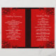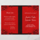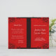 © Sunny Mars Designs - Floral Hibiscus: Dark Red on Red Bi-Fold Wedding Programme - Moderno, moderno y elegante personalizado de personalizable imprimió dos veces la plantilla del programa de bodas con un diseño floral rojo oscuro, rojo oscuro, rojo oscuro, borgoña, rubí o hibiscos marrones y tropicales sobre un fondo rojo brillante. Doble este programa a la mitad para convertirlo en un libro elegante. Personalízalo añadiendo detalles de tu fiesta de boda y de la ceremonia de boda.