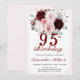 Invitaciones de cumpleaños número 95 con flores de color burdeos y rosa claro | Invitación de cumpleaños con flores de acuarela en burdeos para 50, 60, 70, 80, 90 años... CUALQUIER EDAD