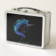 Un perfil de un unicornio negro con un hombre azul y cuerno de plata