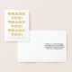 Este diseño de tarjetas de felicitación de agradecimiento de Relieve metalizado oro sencillo y personalizado incluye el mensaje "GRACIAS!" en la parte delantera, junto con un mensaje de personalizable en el interior. Podría ser usado para mostrar gratitud a alguien que ha hecho algo bueno.