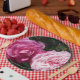 Plato de fiesta de papel con patrón de flor de rosa vintage rosa. Diseñado a partir de mis acuarelas originales.