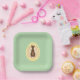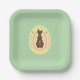 Plato de fiesta de Pascua con un conejo marrón sobre huevo amarillo con fondo verde