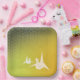 お祝いにふさわしい、折り鶴と紗綾形紋様のペーパープレート。