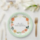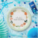 This editable paper plate coordinates with the Floral Gingham Baby Shower invitation and features soft brushed flowers on a watercolor gingham background. The text can be edited for any message.
