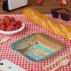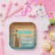El plato de fiesta de papel cuadrado con un cantante vintage y marquesina con 100 años de neón es una excelente manera de celebrar este increíble cumpleaños.