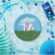 Béisbol blanco con césped verde, cielo azul y nubes por 10 años. La edad se puede cambiar.
