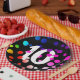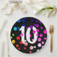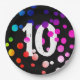 Plato De Papel 10.º cumpleaños con puntos arcoiris en placas de p