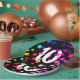 Patrón de puntito arco iris sobre fondo negro para la décima fiesta de cumpleaños. La edad puede ser editada. Se puede cambiar el color de fondo negro.