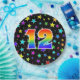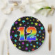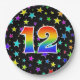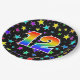 Este alegre, divertido y colorido diseño de placas de papel presenta un gran número "12" que contiene un patrón inspirado en el gradiente del espectro del arco iris. El fondo presenta un patrón de formas estrella coloridas. Placas de papel divertidas como esta podrían ser usadas en la fiesta de cumpleaños número 12 de alguien, o en la celebración del duodécimo aniversario de una pareja, o en algún otro evento número 12. [~Z0000493]