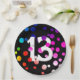 Plato De Papel 13.º cumpleaños con puntos arcoiris en negro