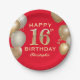 Plato De Papel 16.ª fiesta de cumpleaños Globos Rojo y Oro