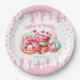 Adorables y divertidos platos de papel con tema de burros para la primera, segunda o cualquier fiesta de cumpleaños de una niña, con adorables donuts rosados y arcoíris pastel y rociaduras con goteo de espuma rosada. Personalice el texto fácilmente y haga una explosión. - Kate Eden Art