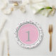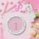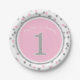Placas de papel elegantes del 1r cumpleaños rosado y de plata. Personalice fácilmente con el nombre de su niño para hacer éstos un tacto especial a su fiesta. Los diseños son gráficos impresos plano - PURPURINA NO REAL.
