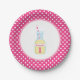 Plato De Papel 1r cumpleaños del lunar blanco rosado de la