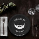 Un plato de papel moderno para un fiesta de 21 años para los hombres en blanco y negro. Con el texto: Hola 21. Con una imagen de barba. Plantillas para un nombre y una fecha. ¡Las servilletas coincidentes están disponibles en nuestra tienda!