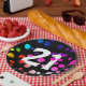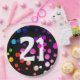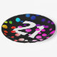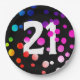 Plato De Papel 21 cumpleaños con puntos arcoiris en negro