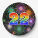 Este divertido, alegre y colorido diseño de placas de papel presenta un gran número "22" que contiene un patrón inspirado en el gradiente del espectro del arco iris. También cuenta con un emocionante y vibrante patrón inspirado en fuegos artificiales de celebración. Tiene un fondo de color negro. Placas de papel divertidas como esta pueden ser usadas en una celebración que se lleva a cabo en honor del 22 cumpleaños de alguien, un 22 aniversario, o algún otro evento del 22. [~Z0000490]