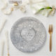 Hermoso corazón plateado adornado sobre la brillante impresión de purpurina plateado en estos adorables platos de papel celebrando su vigésimo quinto aniversario Boda. El texto está listo para que el personalizar tenga sus nombres y fechas.