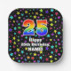 Este divertido y alegre diseño de placas de papel con temática de cumpleaños presenta un gran número "25" con un patrón inspirado en el gradiente del espectro arcoiris, junto con el mensaje "Feliz cumpleaños 25", y un nombre personalizado. El fondo presenta un patrón colorido con muchas estrellas de diferentes tamaños y colores. Las placas de papel como esta podrían ser usadas para celebrar los 25 años de alguien. [~Z0000582]
