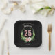Plato De Papel 25.º cumpleaños nombre de escritura floral negra