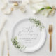 These elegant botanical greenery floral 25th wedding anniversary paper plates can be personalized with the names and special dates of the happy couple. Designed by Thisisnotme©