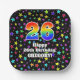 Este divertido y colorido diseño de placas de papel con temática de cumpleaños presenta un gran número "26" con un patrón inspirado en el gradiente del espectro arcoiris. También incluye el mensaje "Feliz cumpleaños 26", y un nombre editable. El fondo presenta un patrón colorido con muchas estrellas de diferentes colores y tamaños. Placas alegres de papel como esta pueden ser divertidas de usar en un fiesta que está siendo retenido por alguien que está celebrando su 26 cumpleaños. [~Z0000582]