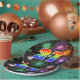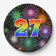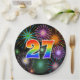 Este alegre, colorido y divertido diseño de placas de papel presenta un gran número "27" que contiene un colorante inspirado en el gradiente del espectro arcoiris. También cuenta con un emocionante y vibrante patrón inspirado en fuegos artificiales de celebración. Tiene un fondo de color negro. Placas de papel como esta podrían ser usadas en un fiesta que celebra el 27 aniversario de alguien, el 27 aniversario o algún otro evento del 27. [~Z0000490]