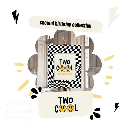 2.ª sonrisa de cumpleaños cara retro negro, blanco y amarillo perno de iluminación fresco decoración de fiesta de cumpleaños diseño de placa de papel