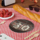 Plato De Papel 30.º cartel de cumpleaños en una pared de ladrillo