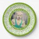 Plato De Papel 35 Patrón de número aleatorio de fotos Verde/Blanc