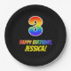 Este divertido, alegre y colorido diseño de placa de papel con temática de cumpleaños presenta un gran número "3" y el mensaje "FELIZ CUMPLEAÑOS", ambos con un colorante inspirado en el gradiente del espectro del arcoiris, junto con un nombre en negrita de personalizable amarillo. El fondo es negro de color. Divertidas, editables placas de papel con temas de cumpleaños como esta podrían ser usadas en la fiesta de tercer cumpleaños de alguien. [~Z0000488]