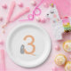 Plato De Papel 3.ᵉʳ cumpleaños moderno conejo gris mínimo