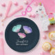 Toallas de papel con un diseño de bonito. 3 mariposas acuarelas, rosas, violetas y verdes. Fondo de color azul oscuro. Personalice el texto de su evento.