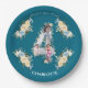 Plato De Papel 4.º cumpleaños Collage de fotos Verde azulado Flor
