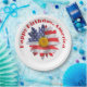 Bandera estadounidense margarita sobre un fondo blanco con texto Feliz Cumpleaños América. Se puede cambiar el color de fondo. El texto es editable.
