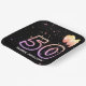 Globos fiestas y confeti sobre fondo negro con el neón número 50 para una fiesta de cumpleaños número 50. El texto "Años asombrosos" puede ser editado o borrado.