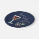 50.º Cumpleaños Placas de Papel Azul de la Marina Rosa de Vino Rojo. La decoración está compuesta por una copa de vino tinto acuarela, rosas y ramas de fondo azul marino. El texto está en blanco y es completamente personalizable - personalizarlo con tu nombre y cualquier edad.