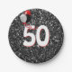 Plato De Papel 50.º globo de cumpleaños sobre Purpurina negro