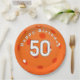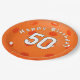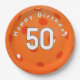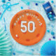 Primer plano de un pickleball naranja por 50 años. Se puede cambiar o eliminar todo el texto.