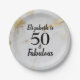 Invite a los amigos a celebrar los fabulosos 50º cumpleaños de su ser querido con este audaz diseño de 50º cumpleaños que es fácil de personalizar sólo para ese chica especial de cumpleaños. 50 y fabulosas placas de papel en mármol dorado y gris con texto negro moderno.