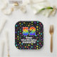 This colorful and cheerful birthday-themed paper plate design features a large number “52” having a rainbow spectrum gradient inspired pattern. It also features the message “Happy 52nd Birthday,”, and a customizable name. The background features a multicolored star field inspired pattern. Exciting paper plates like this might be used when hosting a birthday party for somebody in celebration of their fifty second birthday. [~Z0000582]