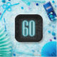 Signo de neón acuático brillante sobre fondo de ladrillo oscuro para una fiesta de cumpleaños número 60.